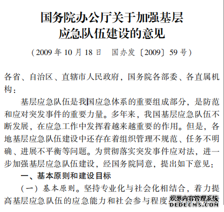國(guó)務(wù)院辦公廳關(guān)于加強(qiáng)基層 應(yīng)急隊(duì)伍建設(shè)的意見(jiàn)