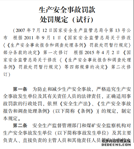 生產安全事故罰款 處罰規(guī)定 (試行)