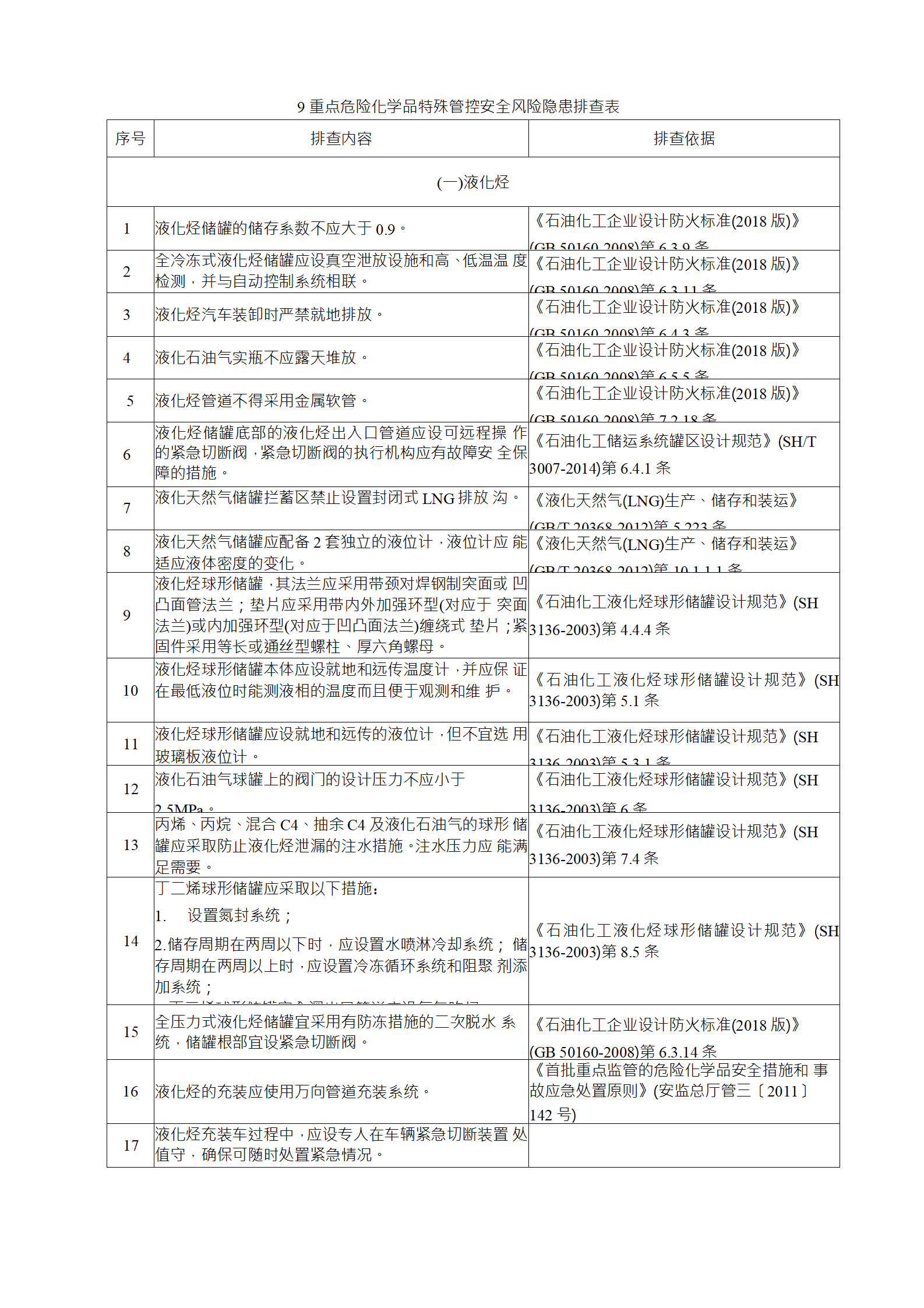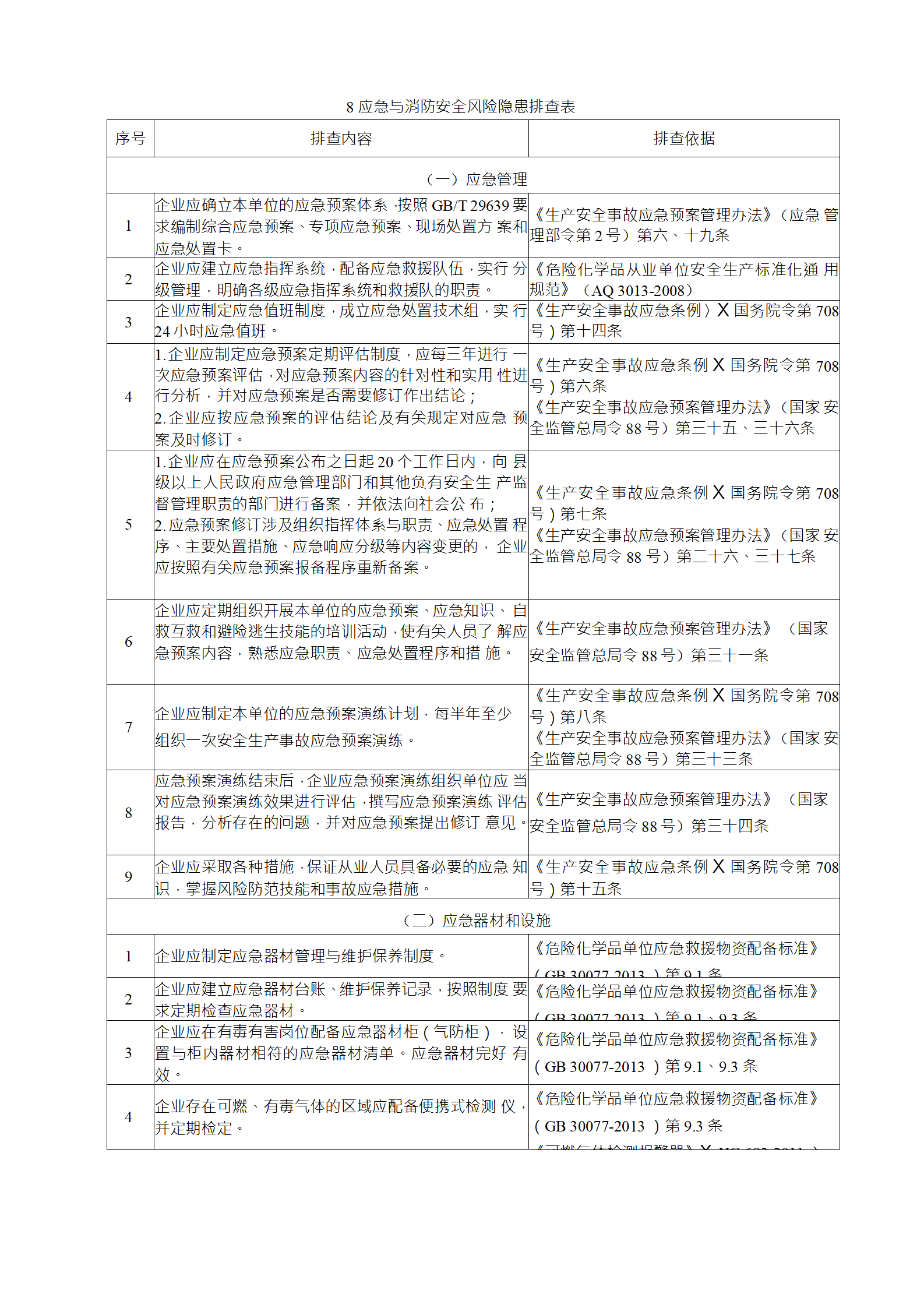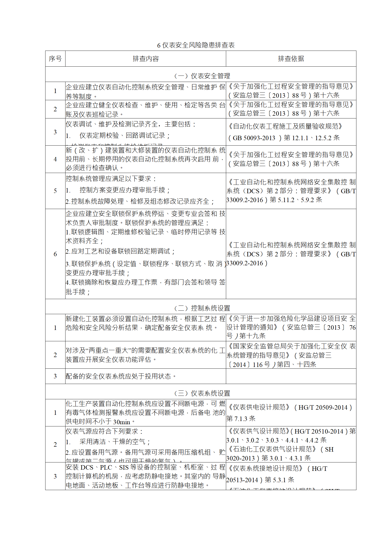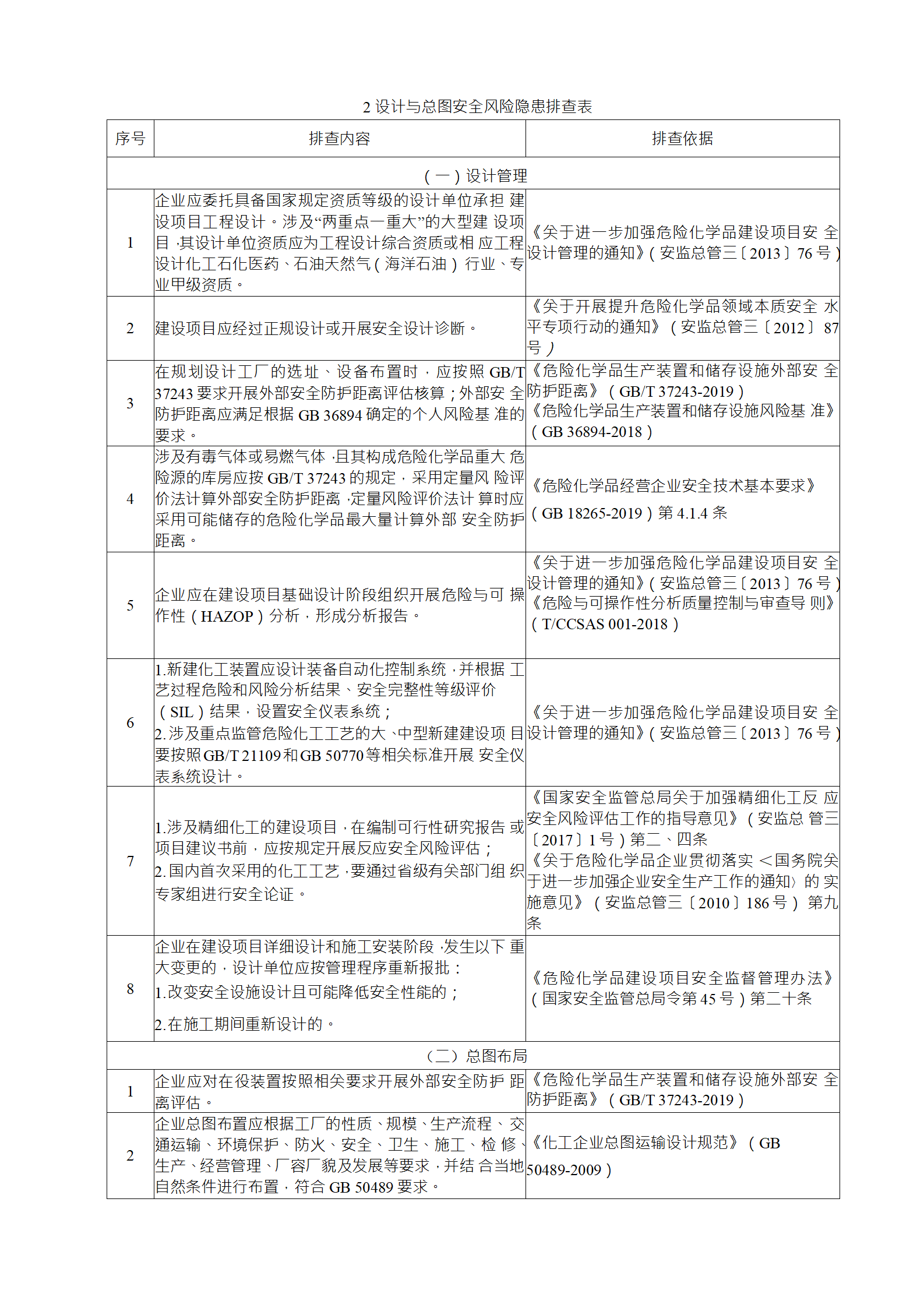 企業(yè)應(yīng)結(jié)合自身安全風(fēng)險及管控水平,按照化工過程安全 管理的要求,參照各專業(yè)安全風(fēng)險隱患排查表(見附件),編制 符合自身實(shí)際的安全風(fēng)險隱患排查表,開展安全風(fēng)險隱患排查 工作。