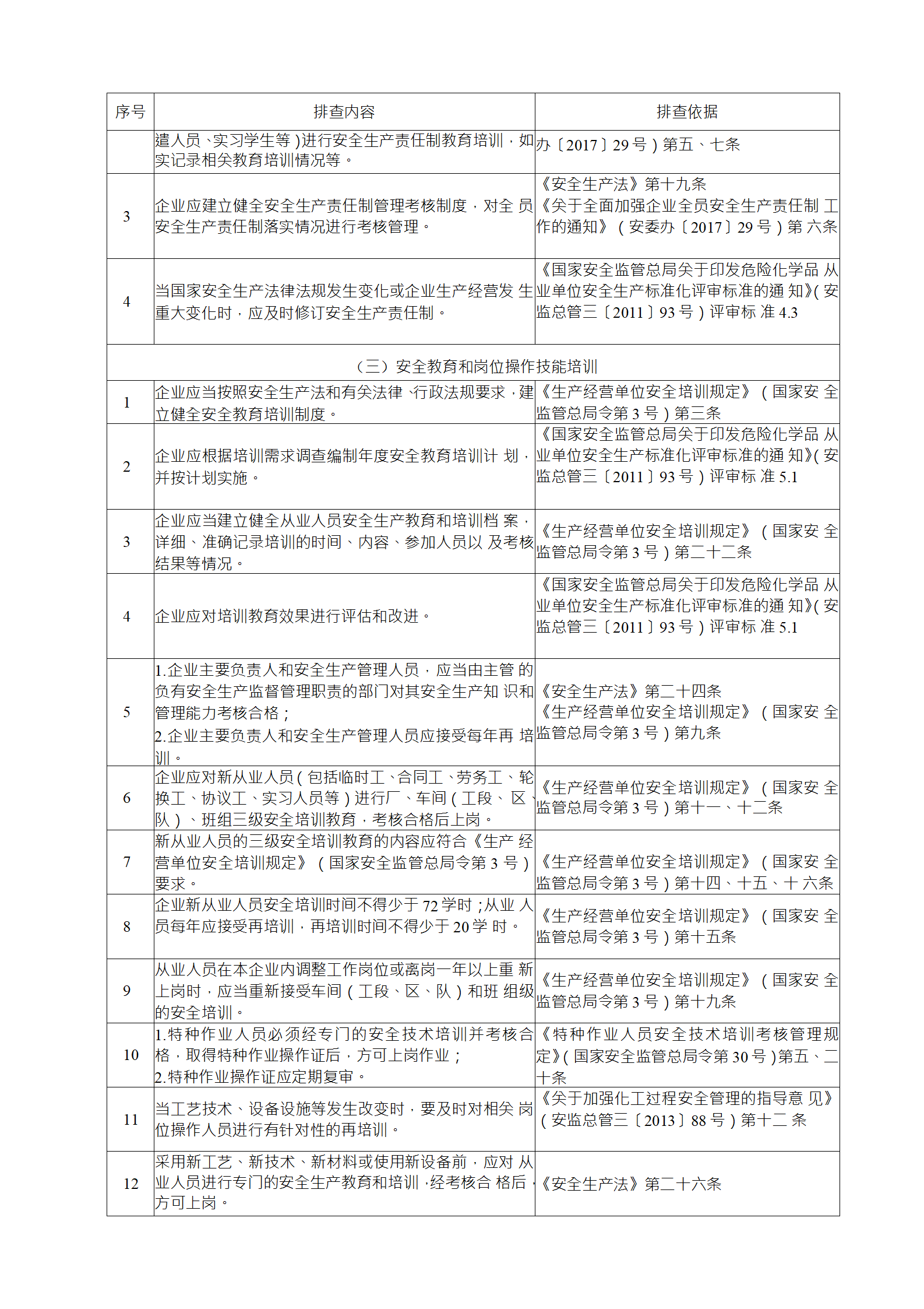 (2)綜合性排查是指以安全生產(chǎn)責(zé)任制、各項專業(yè)管理制 度、安全生產(chǎn)管理制度和化工過程安全管理各要素落實(shí)情況為重點(diǎn)開展的全面檢查;