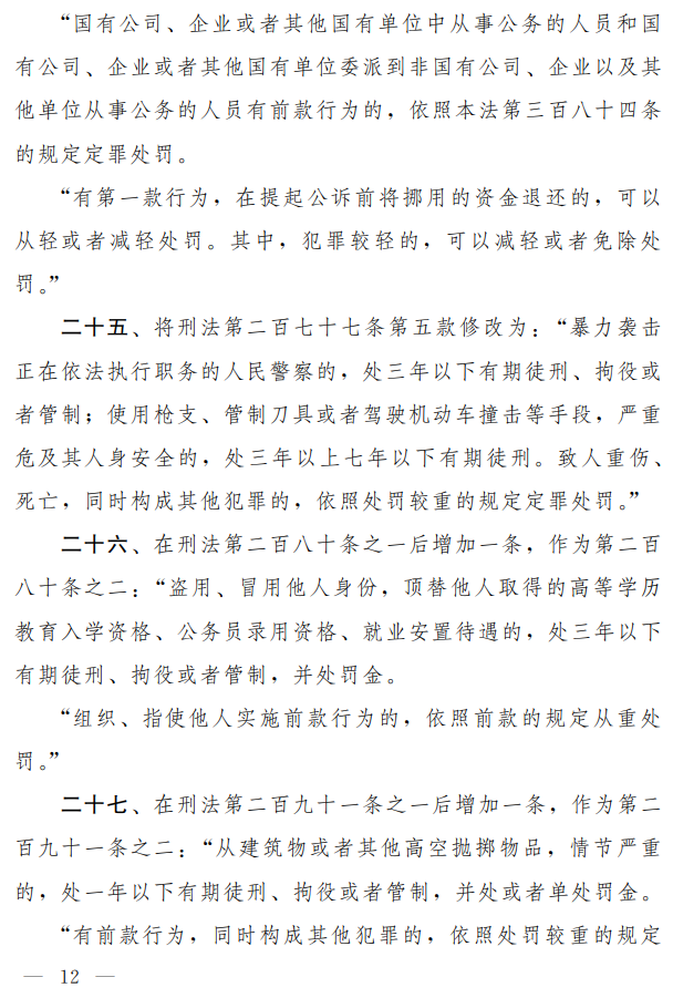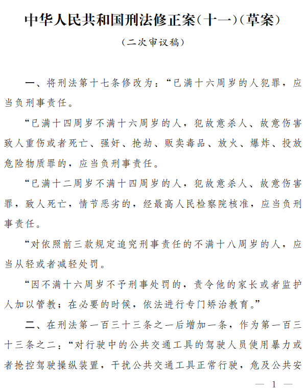 第十三屆全國人大常委會(huì)第二十二次會(huì)議對(duì)《中華人民共和國刑法修正案(十一)(草案二次審議稿)》進(jìn)行了審議,現(xiàn)公布《中華人民共和國刑法修正案(十一)(草案二次審議稿)》全文。