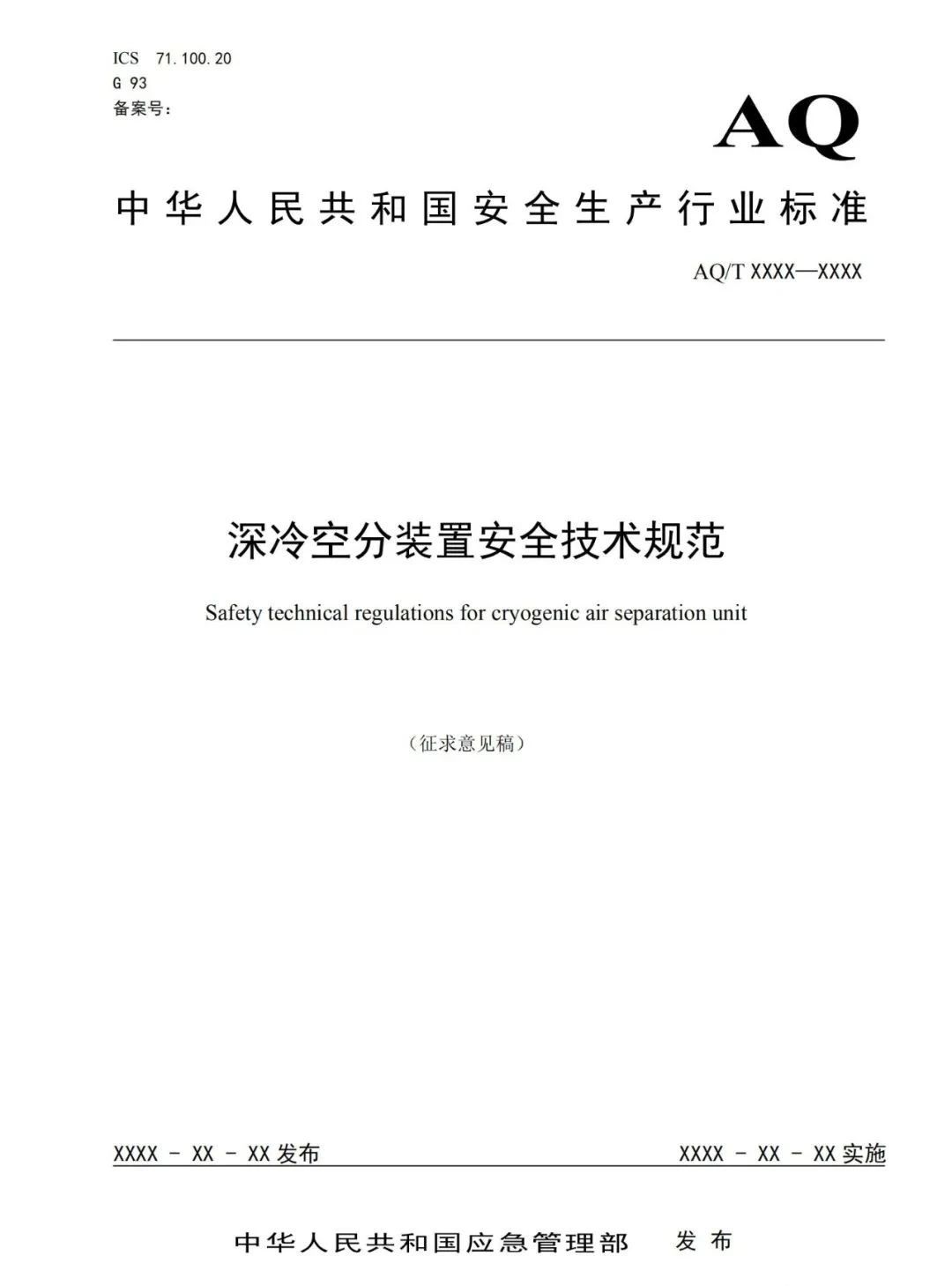 12月15日,國家應急管理部發(fā)布了關于《深冷空分裝置安全技術規(guī)范》(征求意見稿)等兩項標準征求意見。此次公開征求意見時間為2020年12月10日至2021年2月10日。本標準規(guī)定了深冷空分裝置的總體布局、吸入空氣質(zhì)量控制、壓縮機、膨脹機、低溫泵、空分冷箱和精餾系統(tǒng)、產(chǎn)品儲運、稀有氣體裝置、控制系統(tǒng)、安全操作運行、人員管理與事故應急處置等內(nèi)容的要求。本標準適用于以冶金、有色、化工、石化、煤化工、電子等領域采用深冷空分裝置制取氧、氮、氬(包含:氦、氖、氪、氙稀有氣體)等空氣產(chǎn)品的企業(yè)。附件:深冷空分裝置安全技術規(guī)范(征求意見稿)