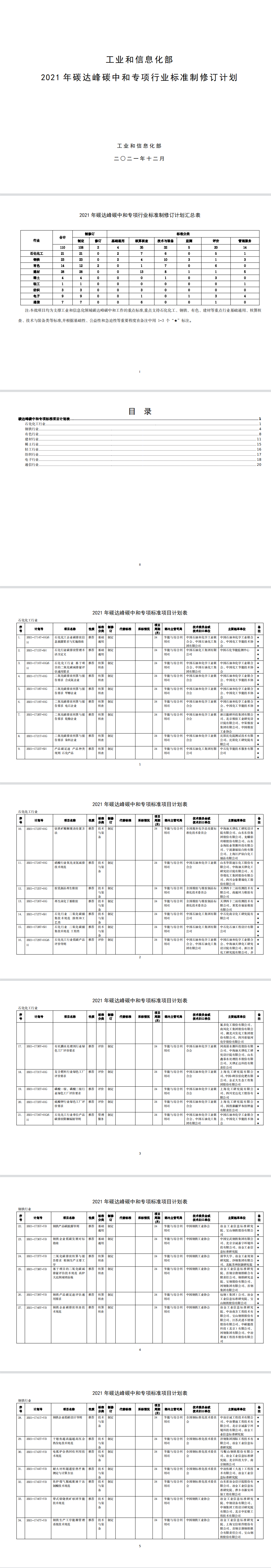 工業(yè)和信息化部辦公廳關(guān)于印發(fā)2021年碳達峰碳中和專項行業(yè)標準制修訂項目計劃的通知