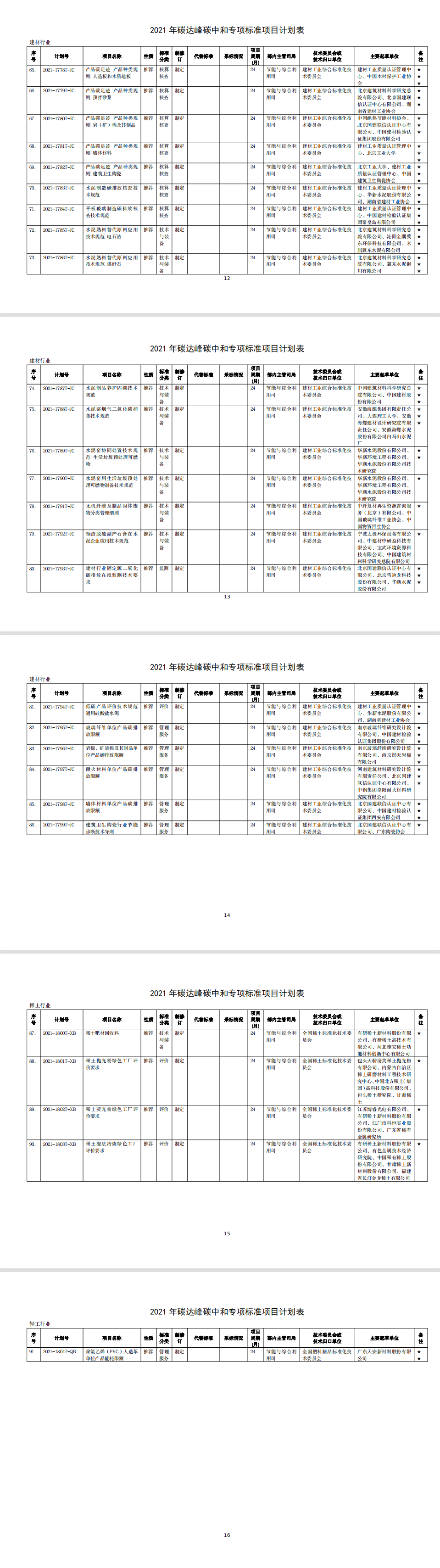 為發(fā)揮標準在推進工業(yè)領(lǐng)域碳達峰碳中和工作的引領(lǐng)和規(guī)范作用,我部編制完成了2021年碳達峰碳中和專項行業(yè)標準制修訂項目計劃?,F(xiàn)印發(fā)給你們,請認真組織落實。有關(guān)事項通知如下: