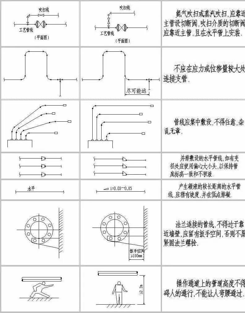 計(jì)中經(jīng)常由于設(shè)計(jì)人員的疏忽及經(jīng)驗(yàn)不足,會(huì)造成管道布置不合理,操作檢修不便,外表不美觀的情況。為提高設(shè)計(jì)質(zhì)量,減少常識(shí)性錯(cuò)誤的發(fā)生,本文為大家整理了配管設(shè)計(jì)中這些最常見(jiàn)的實(shí)例!