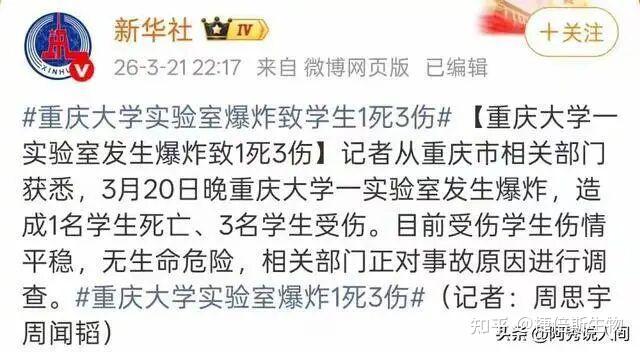 3月20日晚7點(diǎn),重慶大學(xué)科學(xué)城校區(qū)的一個實驗室突然爆炸。當(dāng)時有四名學(xué)生在里面做實驗,爆炸發(fā)生后一名學(xué)生當(dāng)場死亡三人受傷,現(xiàn)場儀器碎了一地,地上還有血跡。