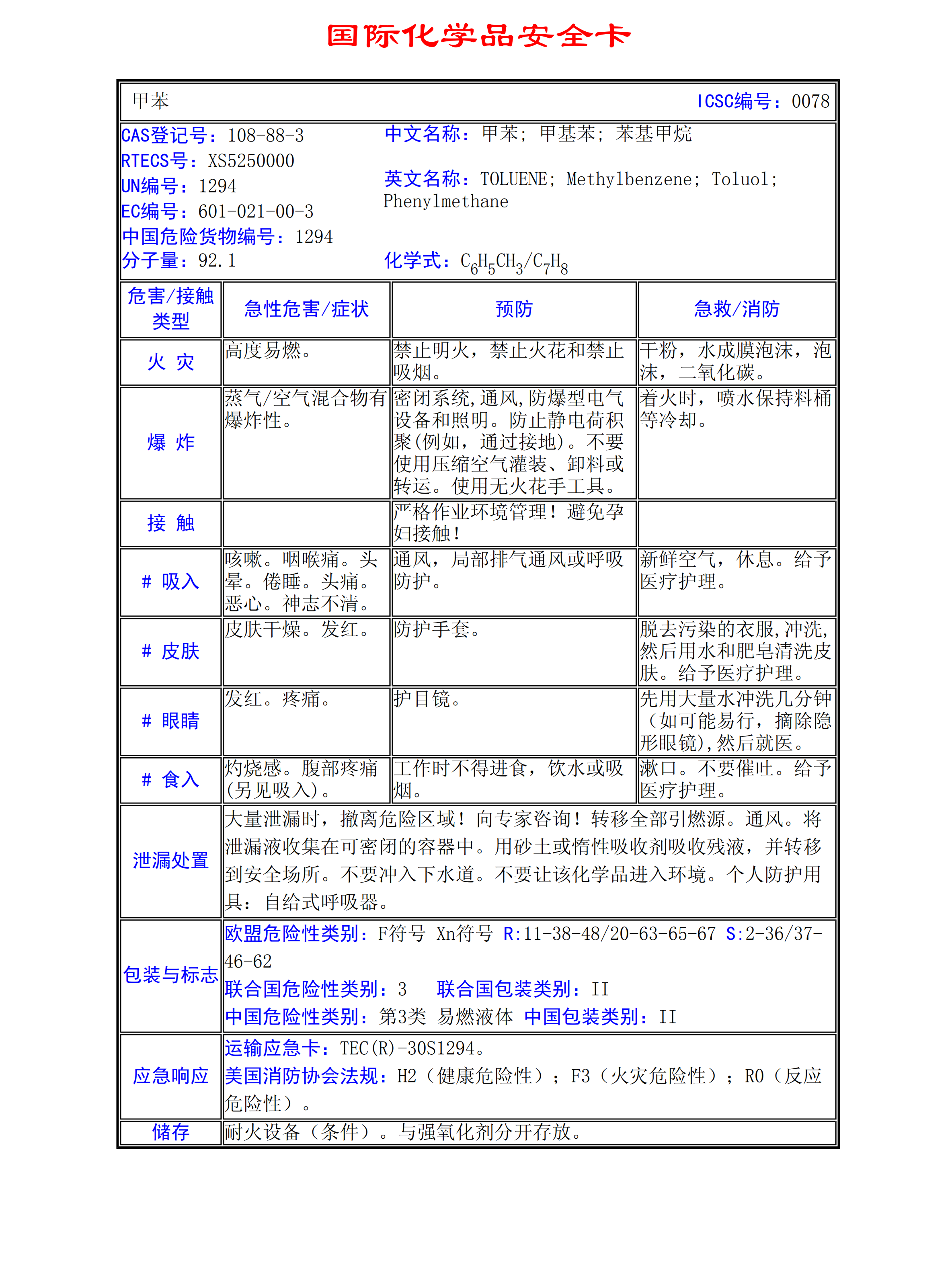甲苯MSDS