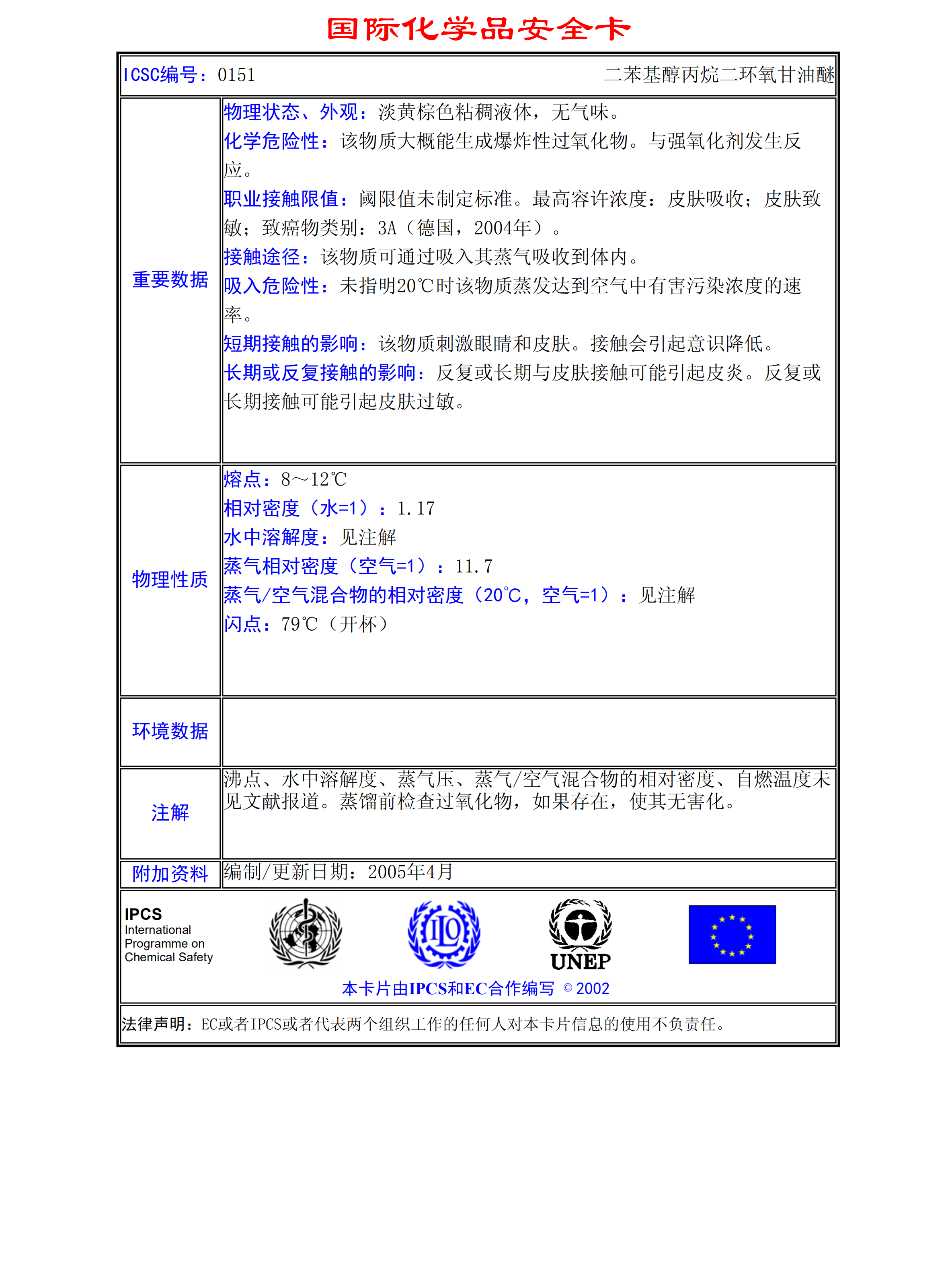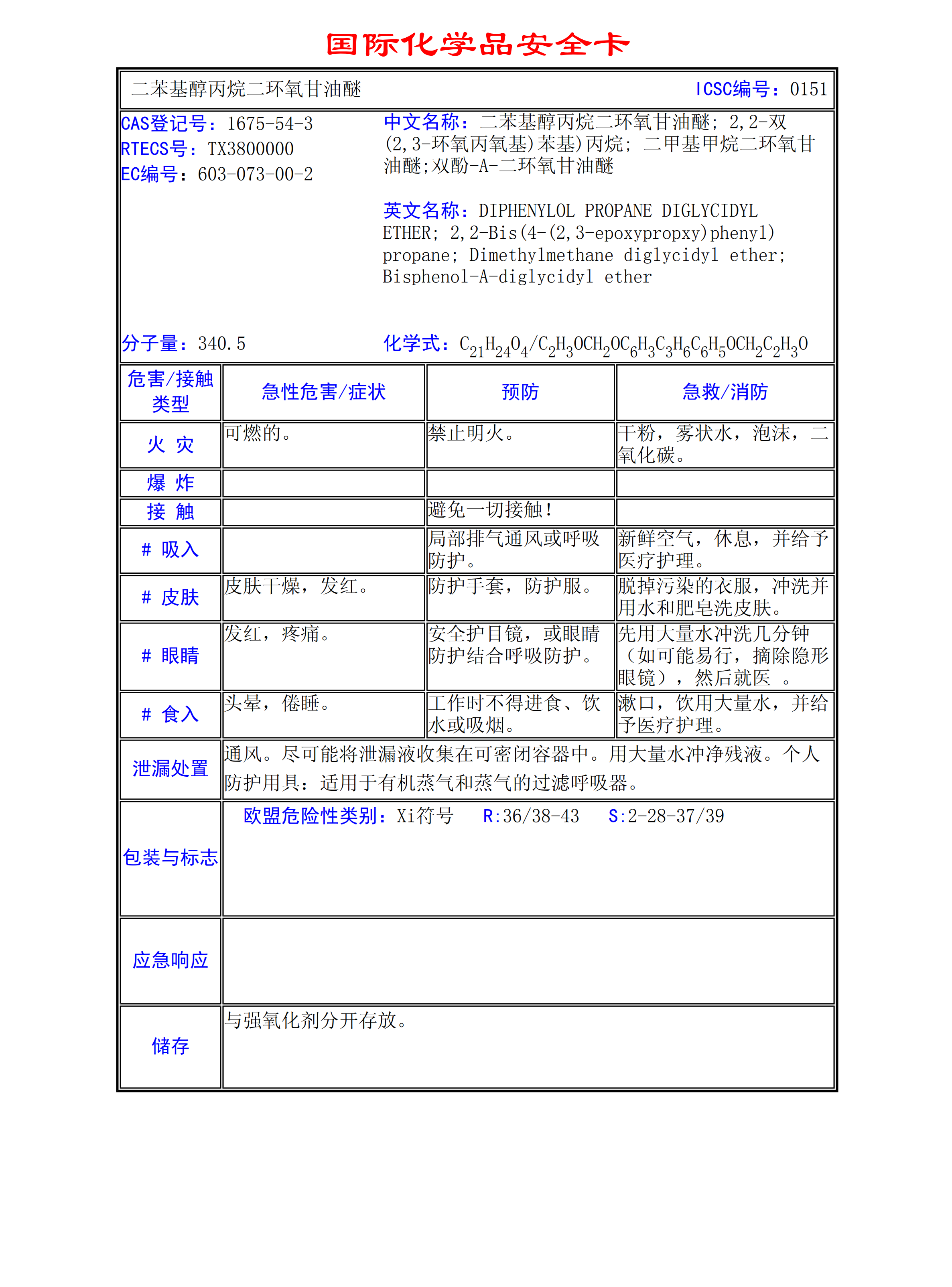 二苯基醇丙烷二環(huán)氧甘油醚MSDS