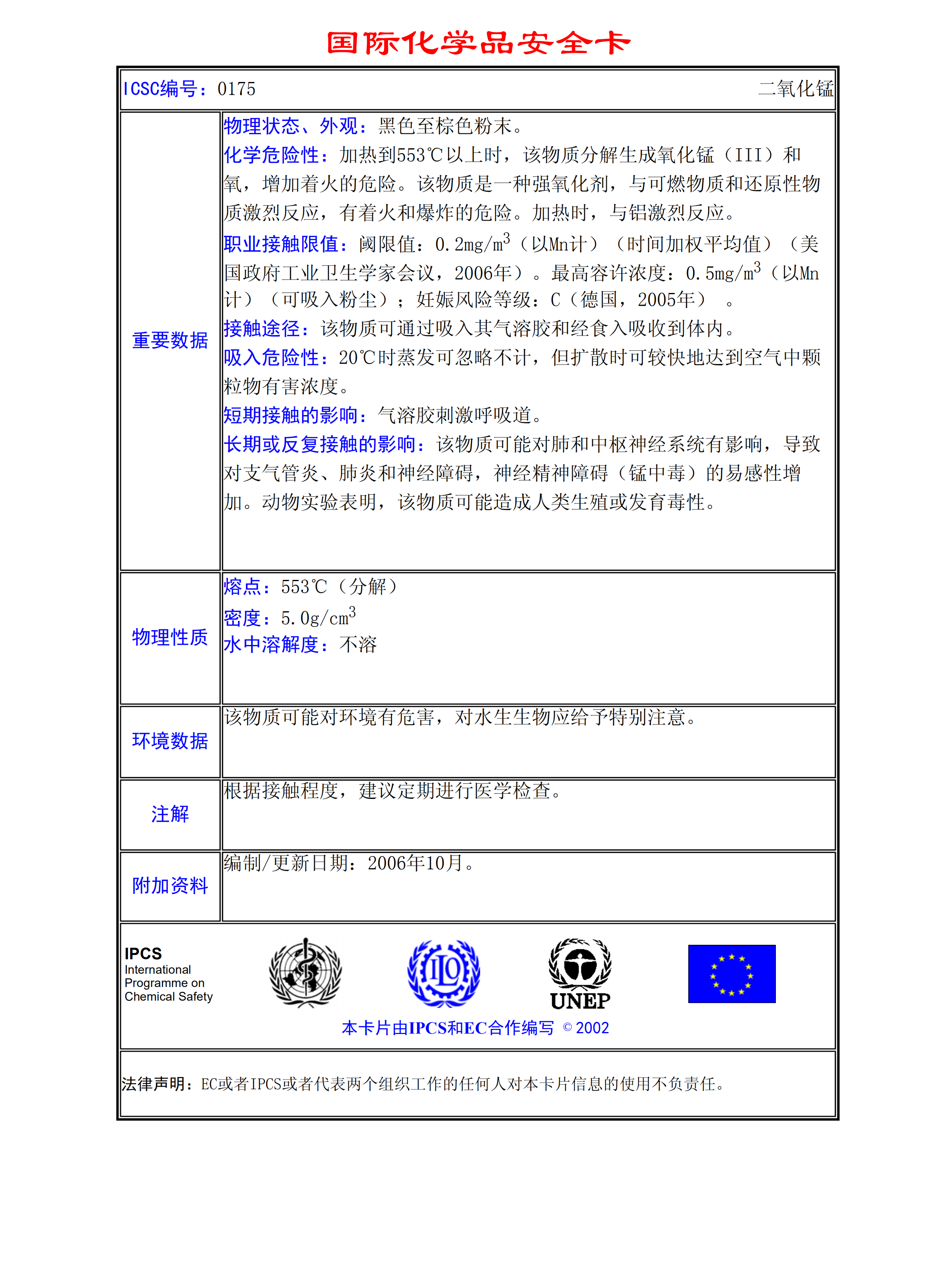 二氧化錳MSDS