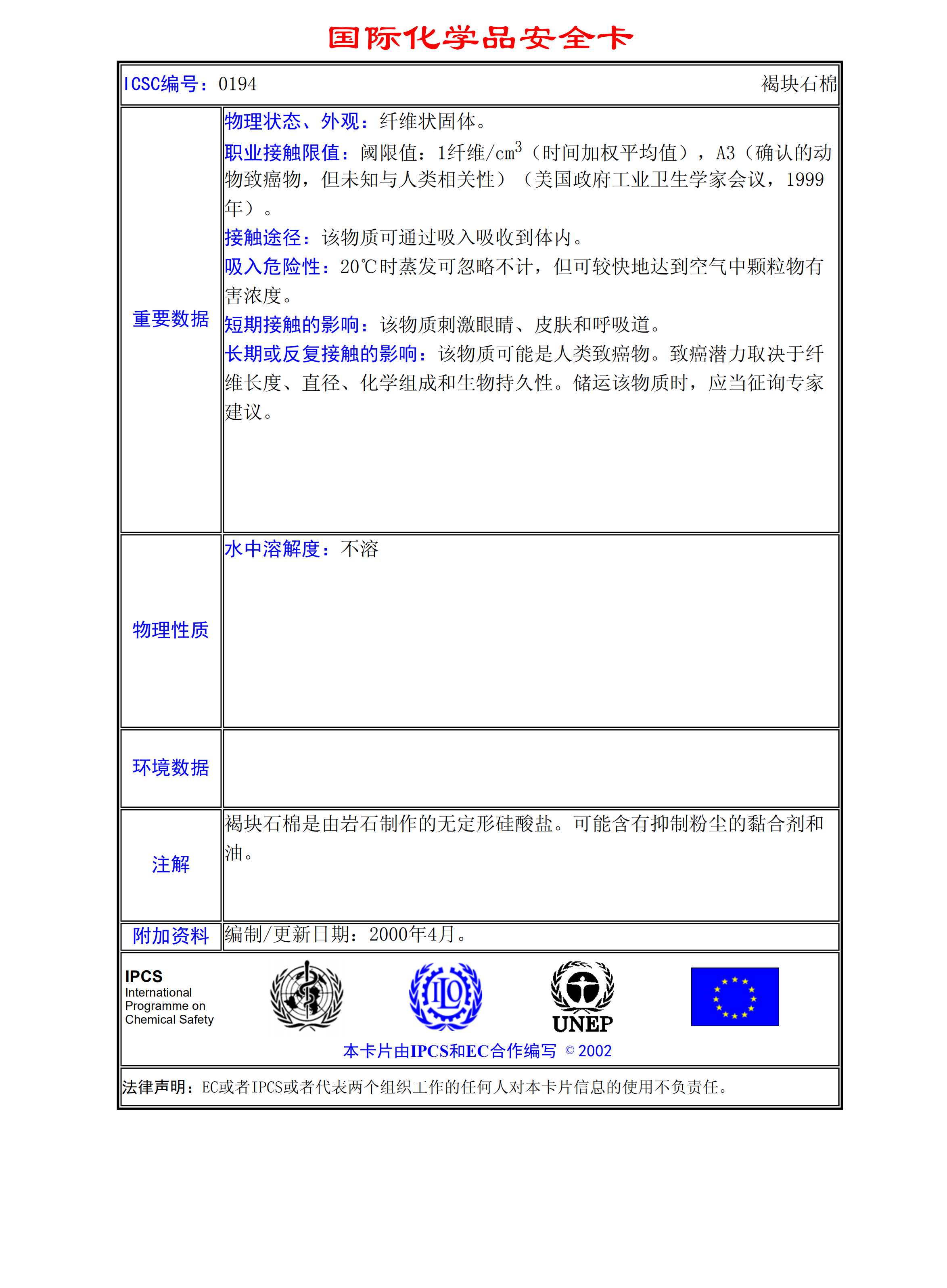 褐塊石棉MSDS