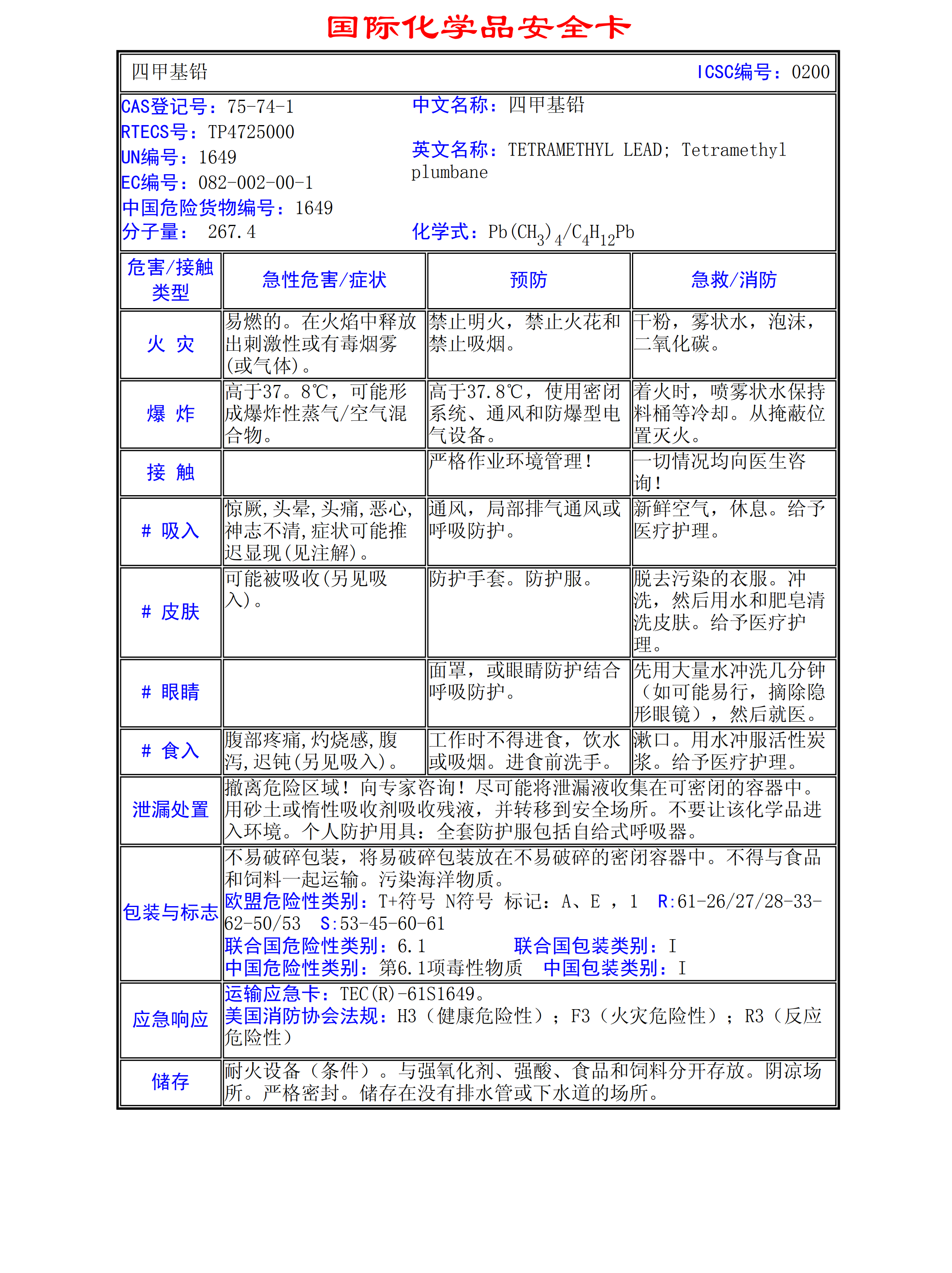 四甲基鉛MSDS