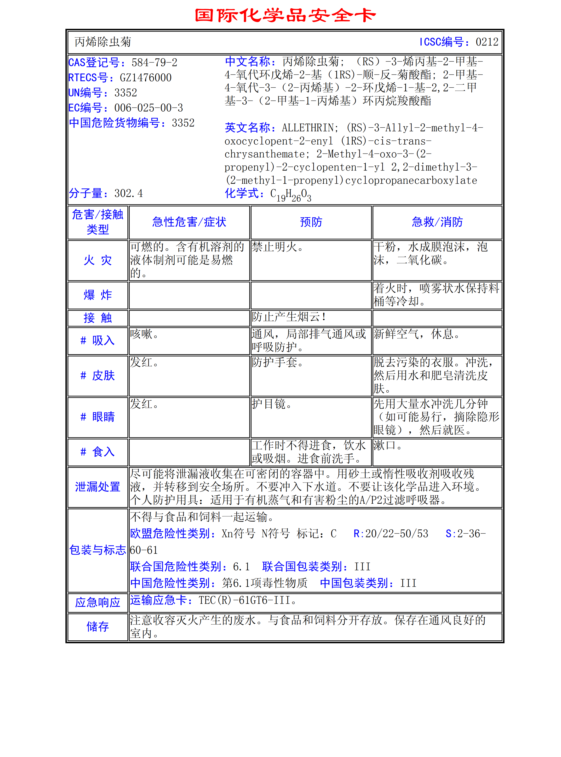 丙烯除蟲菊MSDS