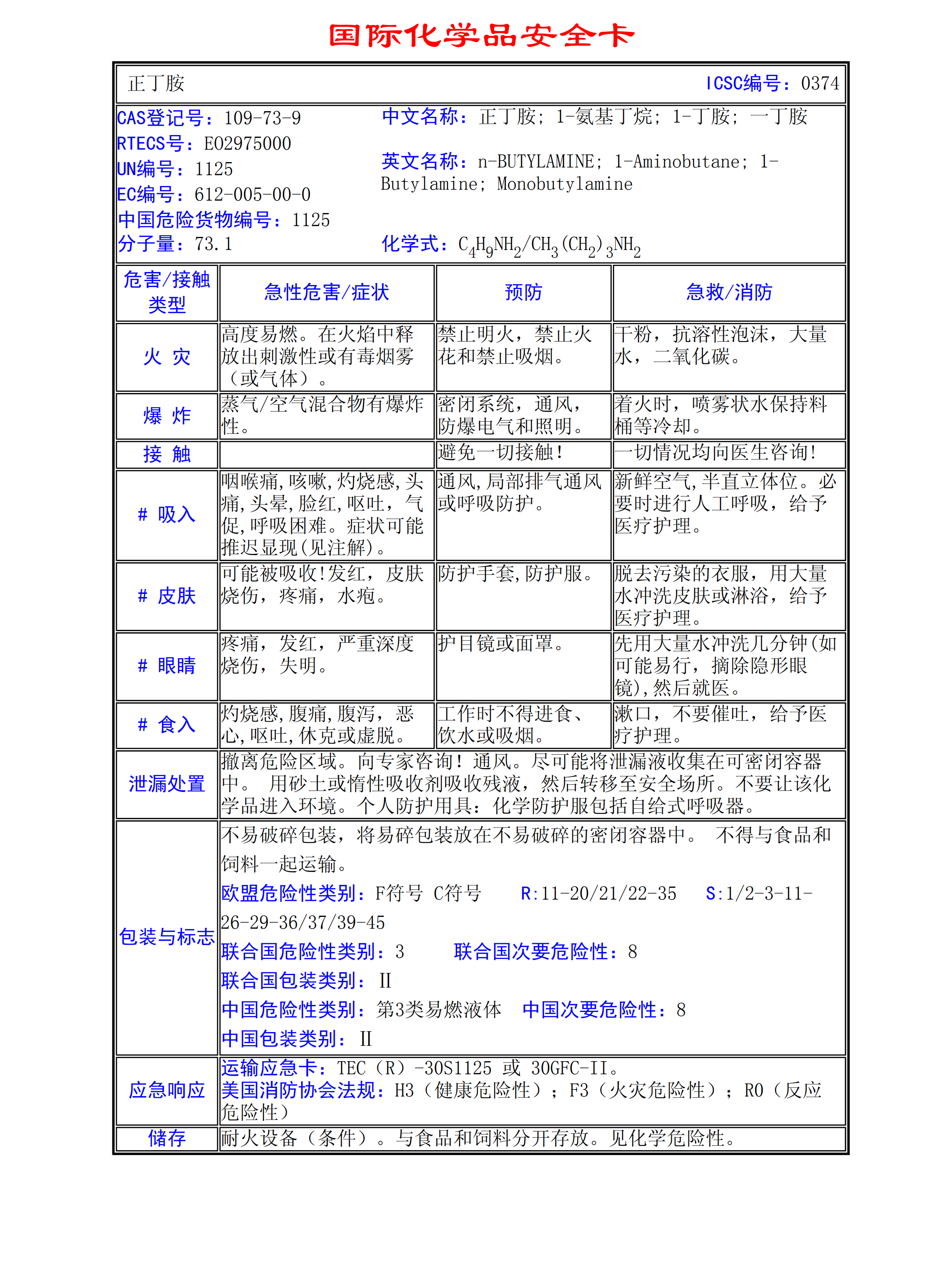 正丁胺MSDS