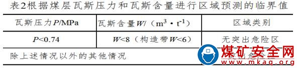 (1)區(qū)域突出危險性預(yù)測采用直接測定法測定煤層瓦斯含量 W 和煤層瓦斯壓力 P,由鉆機(jī)隊施工 4 個預(yù)測孔,防突工負(fù)責(zé)現(xiàn)場監(jiān)督、采集數(shù)據(jù),出具突出危險性預(yù)測報告單,經(jīng)防突隊、科、礦有關(guān)領(lǐng)導(dǎo)審核簽字確認(rèn)后執(zhí)行區(qū)域防突措施。