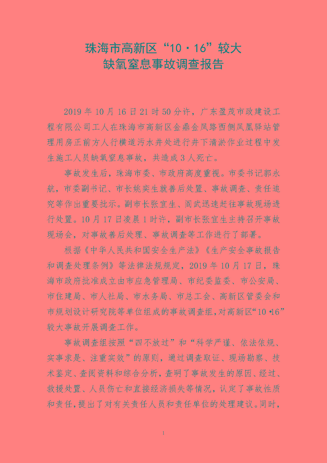 珠海市高新區(qū)“10·16”較大缺氧窒息事故調(diào)查報告