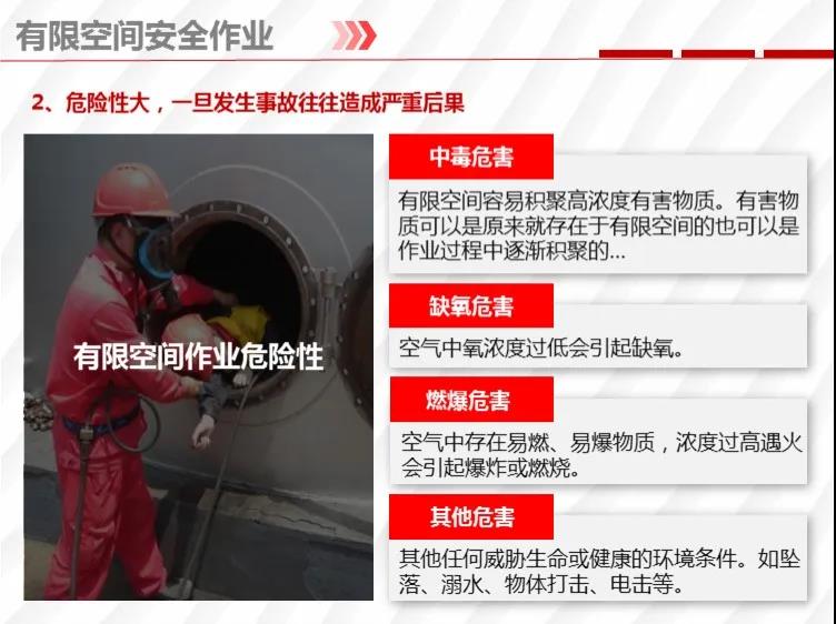 一要立即開展有限空間安全風險排查。春節(jié)假期剛過,各類企業(yè)集中復工復產(chǎn),涉及有限空間作業(yè)安全的檢維修、調(diào)試行為增多,加之氣溫逐漸升高,造成有限空間中有毒有害氣體集聚,安全風險加劇。各地各有關部門要督促涉及有限空間作業(yè)的工礦商貿(mào)企業(yè)以及市政工程、垃圾發(fā)電、燃氣、熱力、排水、衛(wèi)生、環(huán)保等重點單位、重點區(qū)域、重點場所開展全方位的風險隱患排查。對發(fā)現(xiàn)的風險隱患,企業(yè)要逐一登記造冊,向負有安全監(jiān)管職責的部門報告,并按照《有限空間作業(yè)安全指導手冊》(應急廳函〔2020〕299號)要求落實各項防范措施。