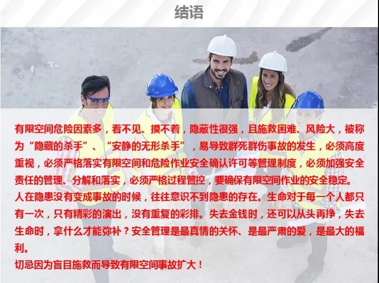 事故暴露出企業(yè)和從業(yè)人員對有限空間風險辨識不清、試生產(chǎn)過程中安全防范措施不到位、盲目施救導致傷亡擴大等問題,也暴露出監(jiān)督管理存在薄弱環(huán)節(jié)等問題。省政府領導高度重視,王清憲省長、鄧向陽常務副省長、張紅文副省長先后作出批示,要求妥處善后,查清原因,嚴格追責。為深刻吸取事故教訓,堅決遏制類似事故再次發(fā)生,現(xiàn)提出以下工作要求,請結合本地區(qū)本部門實際認真貫徹執(zhí)行。
