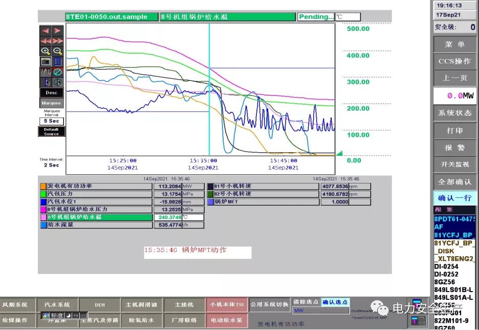 15 時(shí) 35 分,值長(zhǎng)下令停爐。