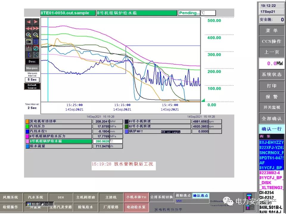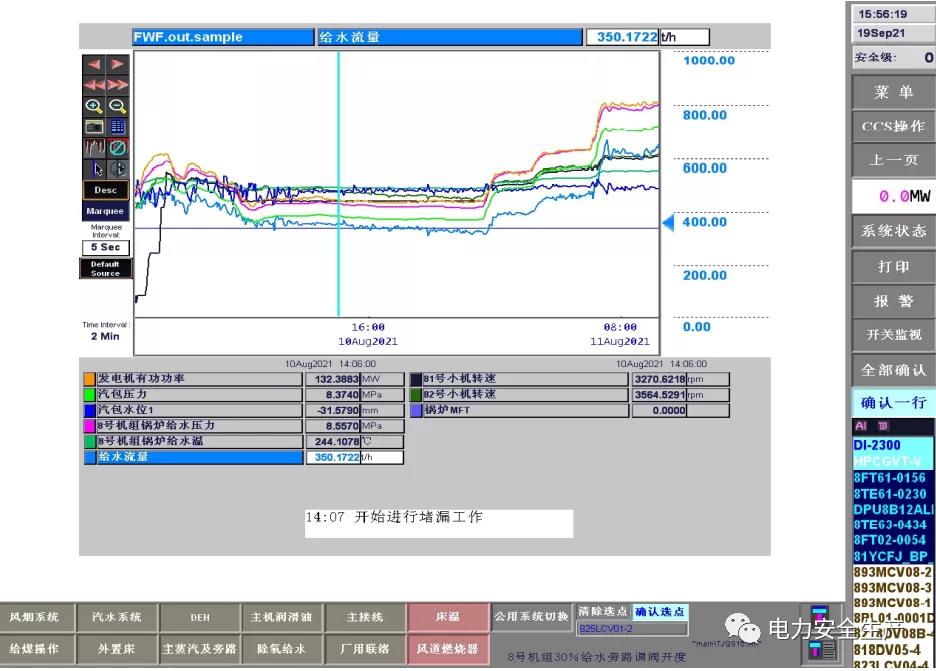 5.調(diào)閱 9 月 14 日機(jī)組運(yùn)行參數(shù),帶壓堵漏工作開(kāi)始前沒(méi)有采取降負(fù)荷、降給水壓力及溫度等安全預(yù)控措施,也沒(méi)有維持運(yùn)行參數(shù)穩(wěn)定的具體措施。