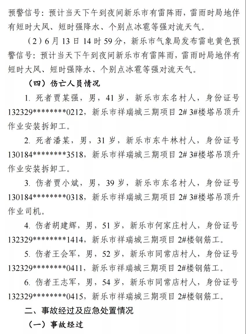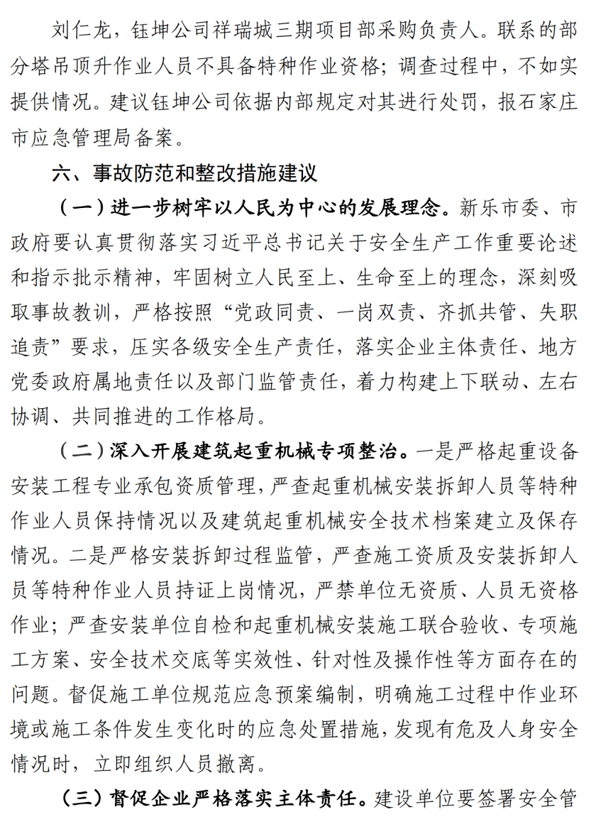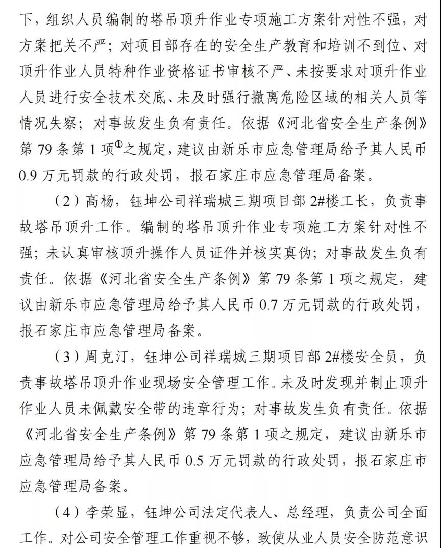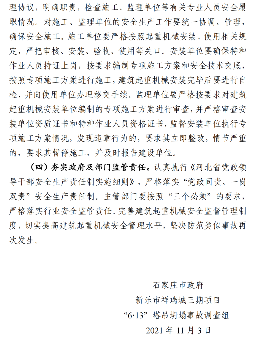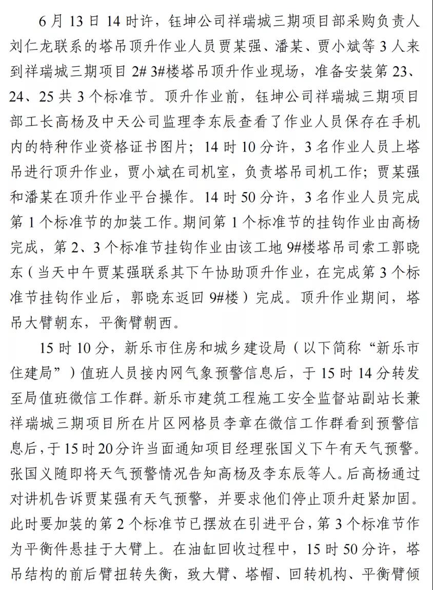 河北石家莊新樂市祥瑞城建筑工地在塔吊頂升作業(yè)事故調查報告