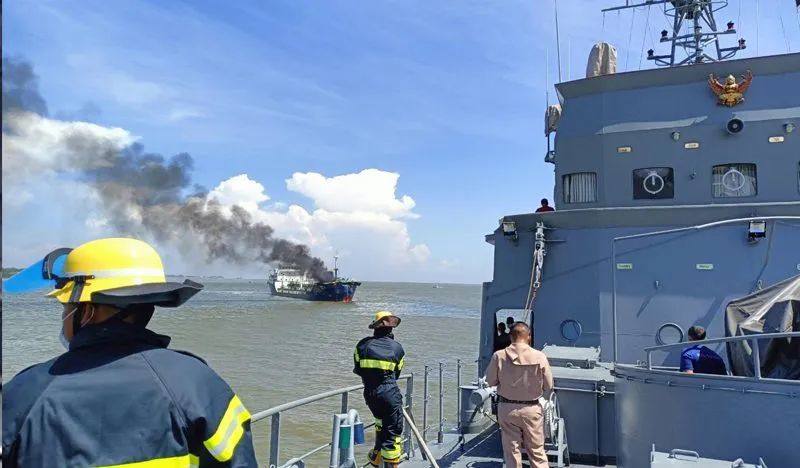事發(fā)后,相關(guān)部門立即派消防船前往撲救,醫(yī)護(hù)人員已將傷者送往醫(yī)院。目前事發(fā)船只正漂向泰國灣入??诜较?,船上的火勢已減弱,尚不清楚造成爆炸的原因。