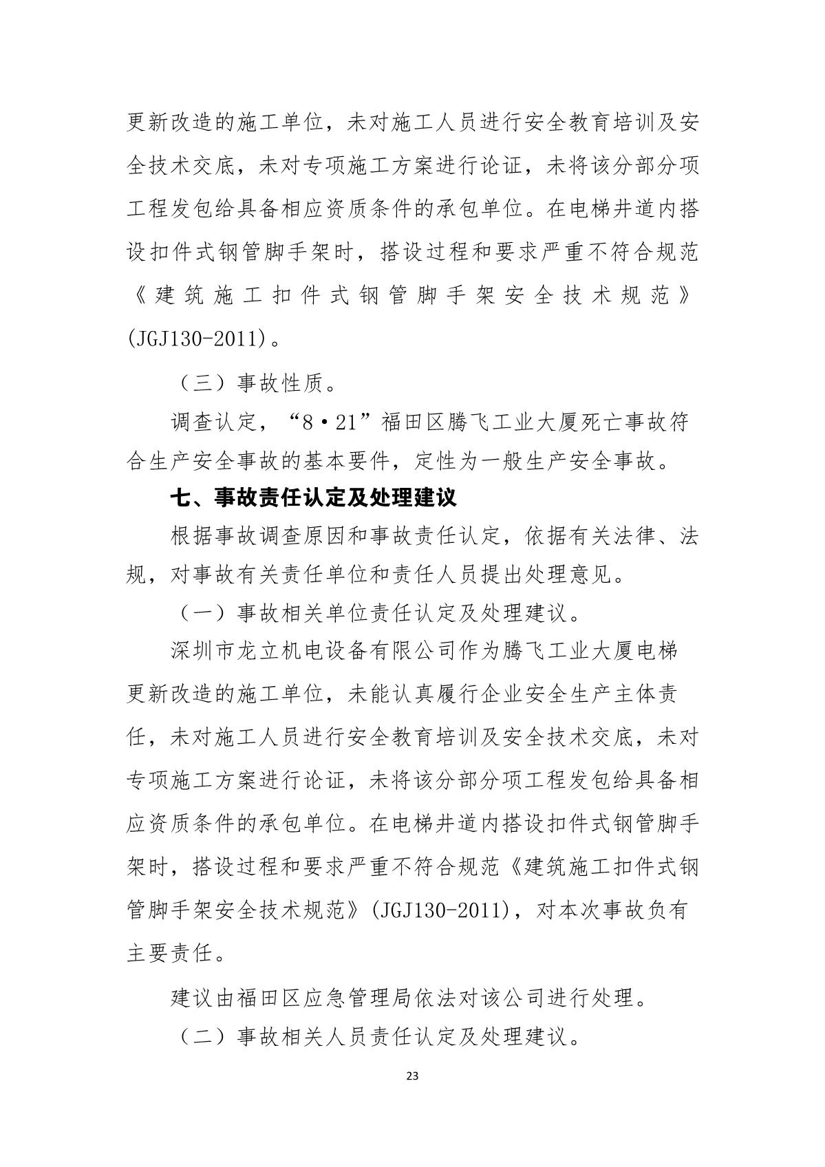 “8.21”福田區(qū)騰飛工業(yè)大廈死亡事故調查報告