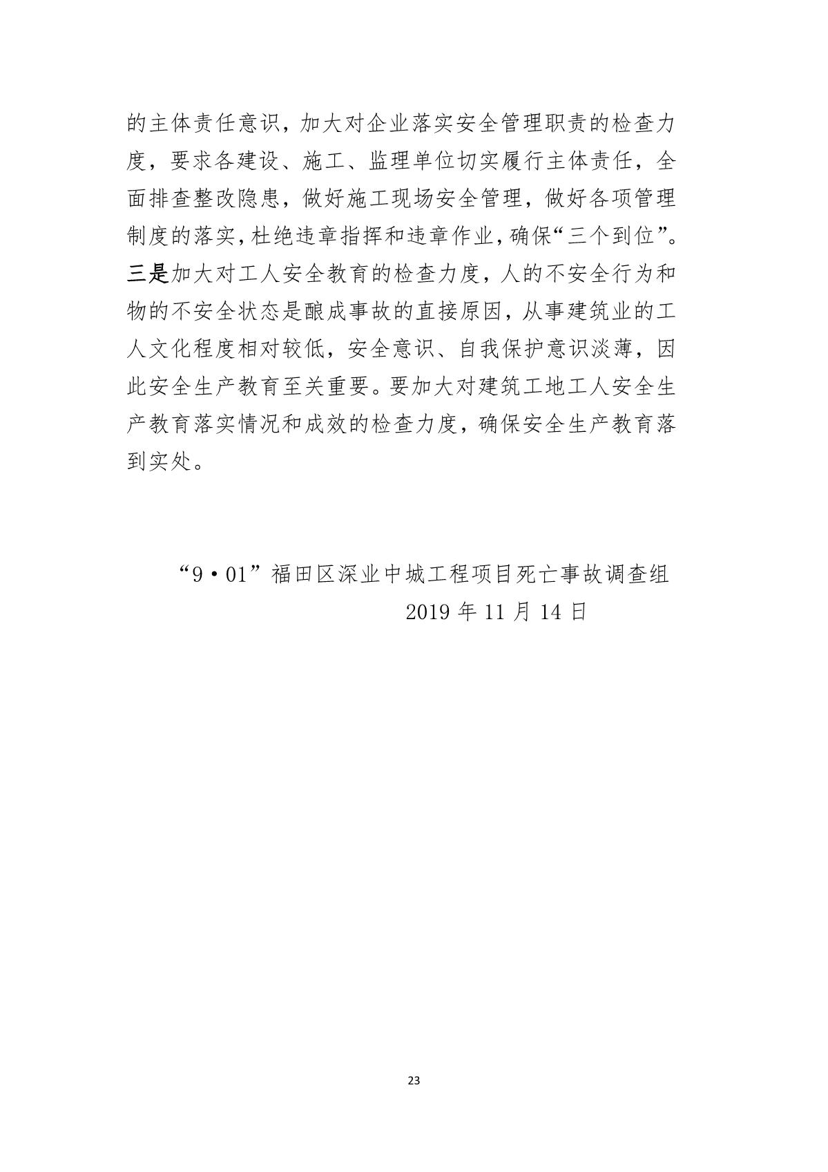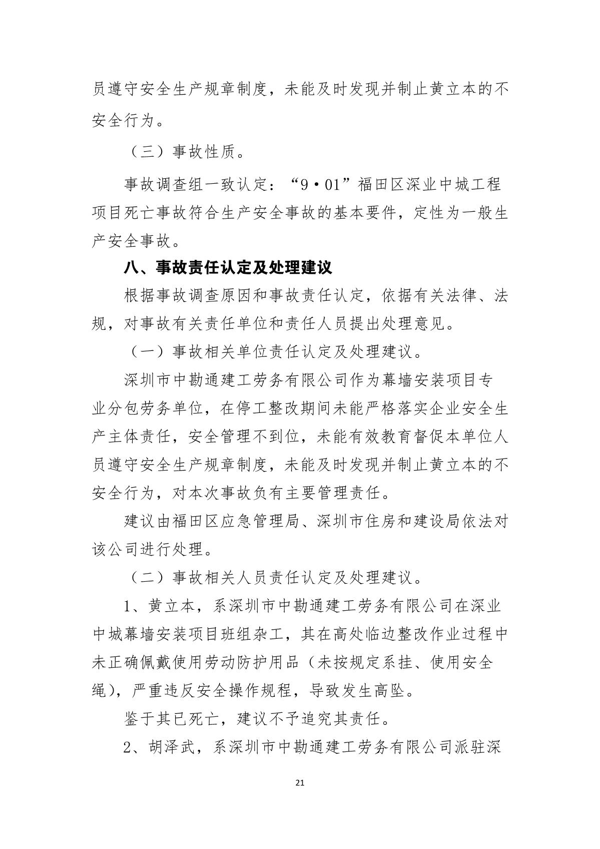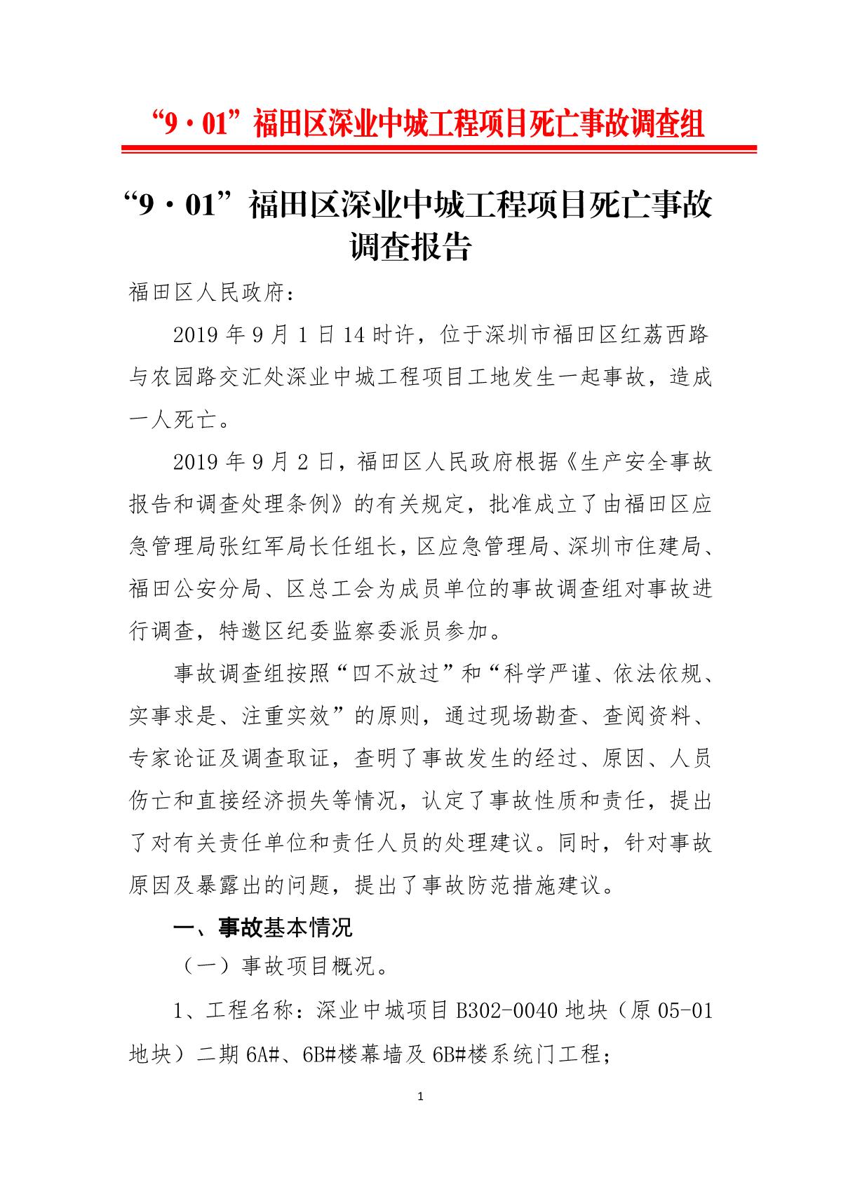 “9.01”福田區(qū)深業(yè)中城工程項目死亡事故調(diào)查報告