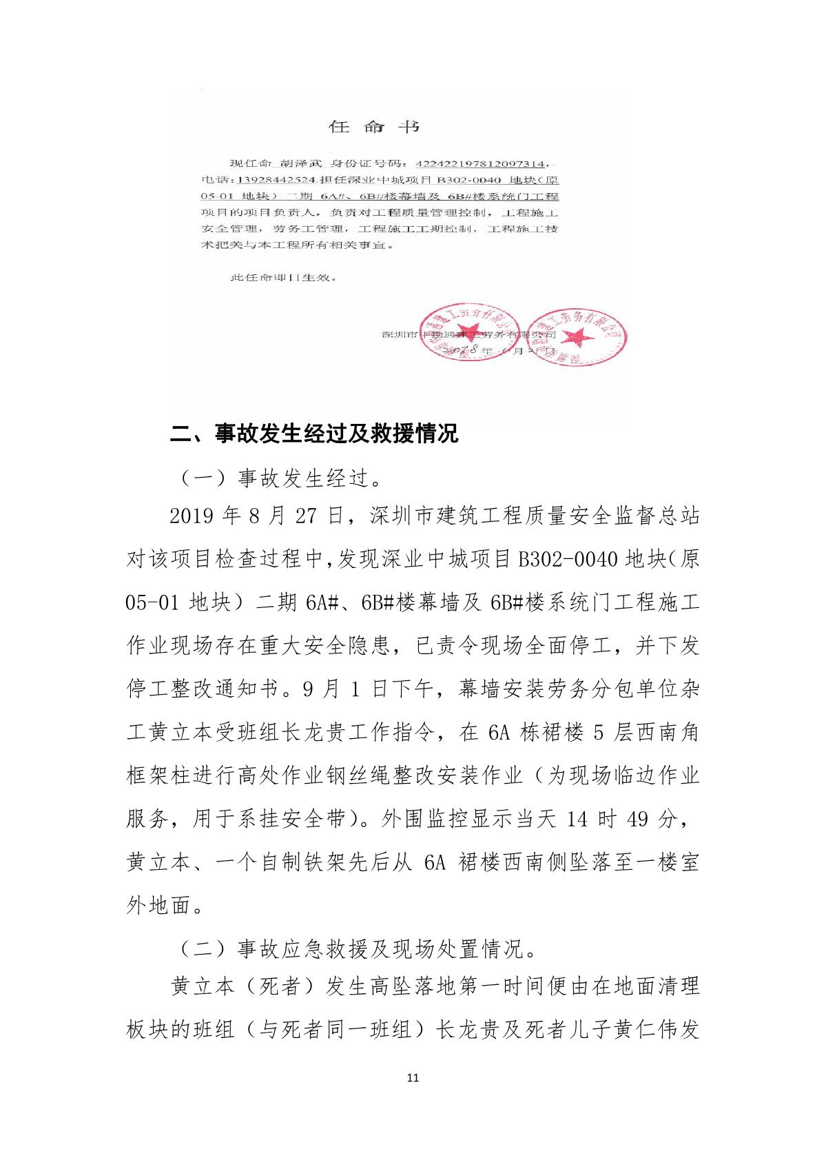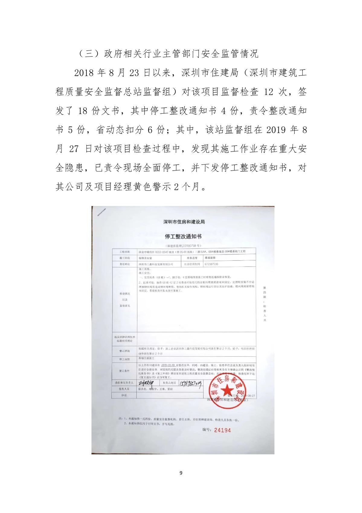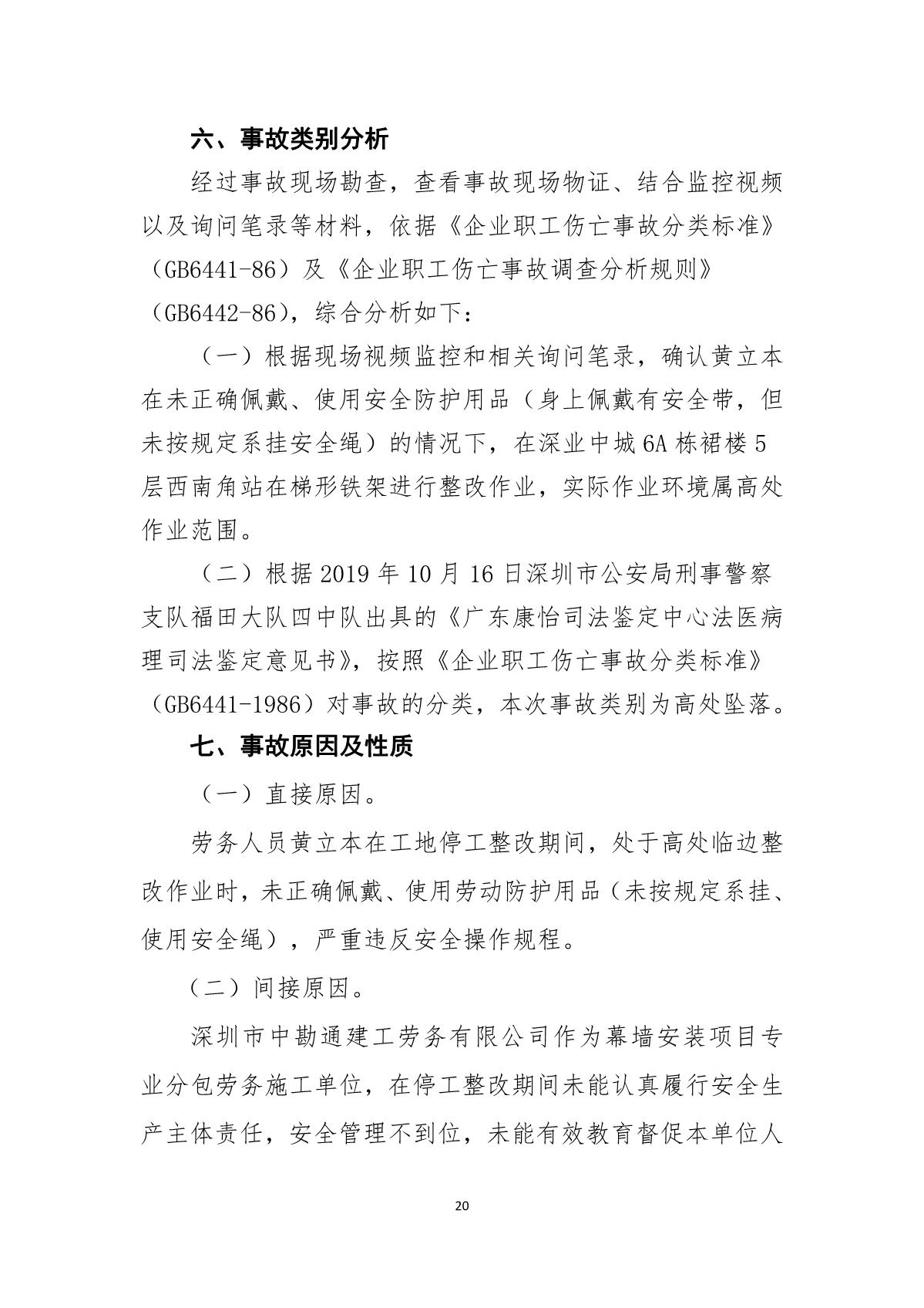 “9.01”福田區(qū)深業(yè)中城工程項目死亡事故調(diào)查報告