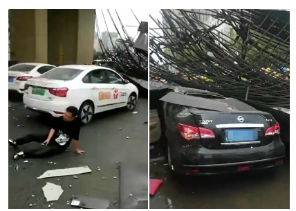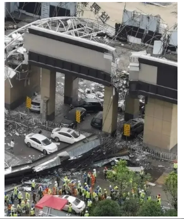 市民拍攝的多段視頻顯示,一輛黑色小轎車(chē)被倒塌的鋼筋壓住,后座一名年輕女子雙腿被壓受困,旁邊有人安撫她,等消防過(guò)來(lái)施救。另外還有一名男子受傷,坐在路面上,左手撐著身體,面部表情痛苦。