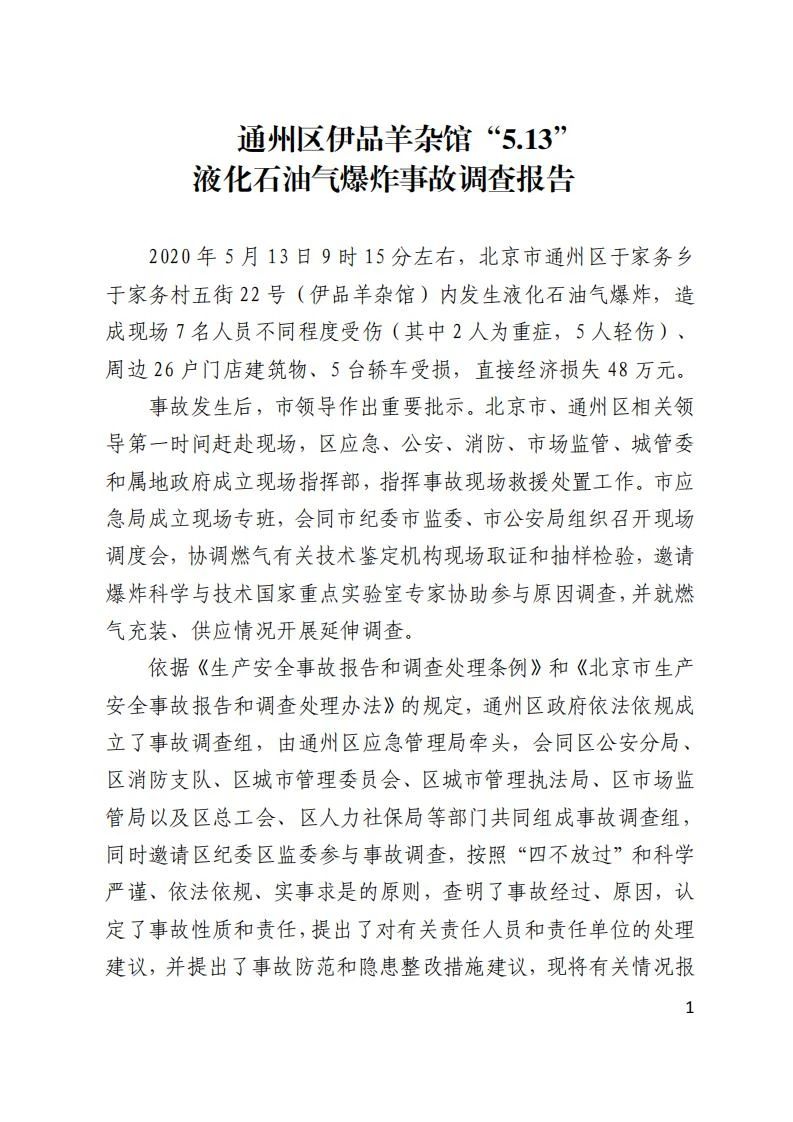 造成7人受傷,26戶建筑物、5輛汽車受損的北京市通州區(qū)伊品羊雜館“5.13”液化石油氣爆炸事故調(diào)查報告,來了!