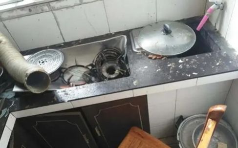 趕緊跑進(jìn)廚房查看,發(fā)現(xiàn)灶上的高壓鍋發(fā)生爆炸。廚房里的灶臺(tái)、櫥柜、排煙管皆被震碎,現(xiàn)場一片狼藉,