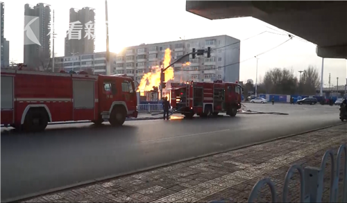 11月26日早上7點(diǎn)20左右,遼寧省沈陽(yáng)市鐵西區(qū)重工街與沈新路交匯口,由于地下燃?xì)夤艿佬孤?dǎo)致起火,迅速引燃多輛路邊停放的車輛。