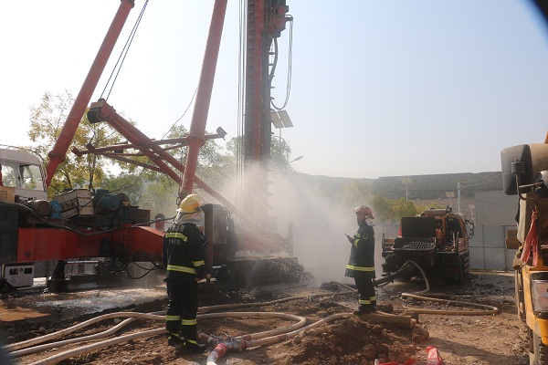 蘭州支隊(duì)七里河消防大隊(duì)第一時(shí)間到達(dá)現(xiàn)場(chǎng)參與處置,到達(dá)現(xiàn)場(chǎng)后發(fā)現(xiàn):現(xiàn)場(chǎng)管道仍處于天然氣泄漏狀態(tài),未有明火發(fā)生?,F(xiàn)場(chǎng)指戰(zhàn)員立即設(shè)置警戒線(xiàn),對(duì)現(xiàn)場(chǎng)圍觀施工人員及群眾進(jìn)行疏散撤離,對(duì)泄露事故點(diǎn)毗鄰居民樓進(jìn)行人員通告疏散,同時(shí)設(shè)置水槍防護(hù)陣地。隨著增援中隊(duì)處置力量的到達(dá),現(xiàn)場(chǎng)處置指揮員七里河大隊(duì)大隊(duì)長(zhǎng),統(tǒng)一指揮調(diào)度現(xiàn)場(chǎng)事故處置力量:首先,結(jié)合現(xiàn)場(chǎng)街道路況,設(shè)置疏散組,對(duì)毗鄰居民樓全面進(jìn)行人員清查疏散。設(shè)置警戒組并專(zhuān)人看守,嚴(yán)防非事故處置人員進(jìn)入。然后在先期到達(dá)成立的消防水槍防護(hù)陣地基礎(chǔ)上,增設(shè)水槍防護(hù)陣地;其次調(diào)派到達(dá)現(xiàn)場(chǎng)的增援消防中隊(duì)兩臺(tái)水罐消防車(chē)全程待命,做好供水保障。