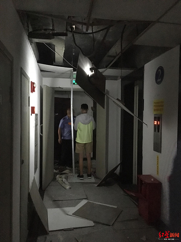 業(yè)主們紛紛跑出門,發(fā)現(xiàn)該住宅樓二樓的過道上,天花板垮了一地,門板、玻璃倒落在地上,二樓一住戶家中門開著,爆炸聲由此傳出。“一位住戶和一位保安受了傷,馬上打120送去了醫(yī)院?!币晃蛔舴Q。