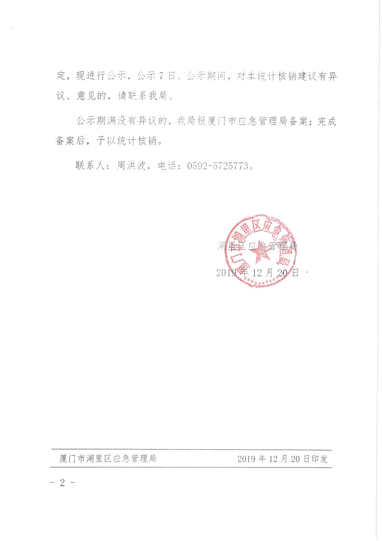 湖里區(qū)應(yīng)急管理局關(guān)于建議對“4·8”廈門德易達(dá)土石方有限公司亡人事故進(jìn)行統(tǒng)計核銷的公示