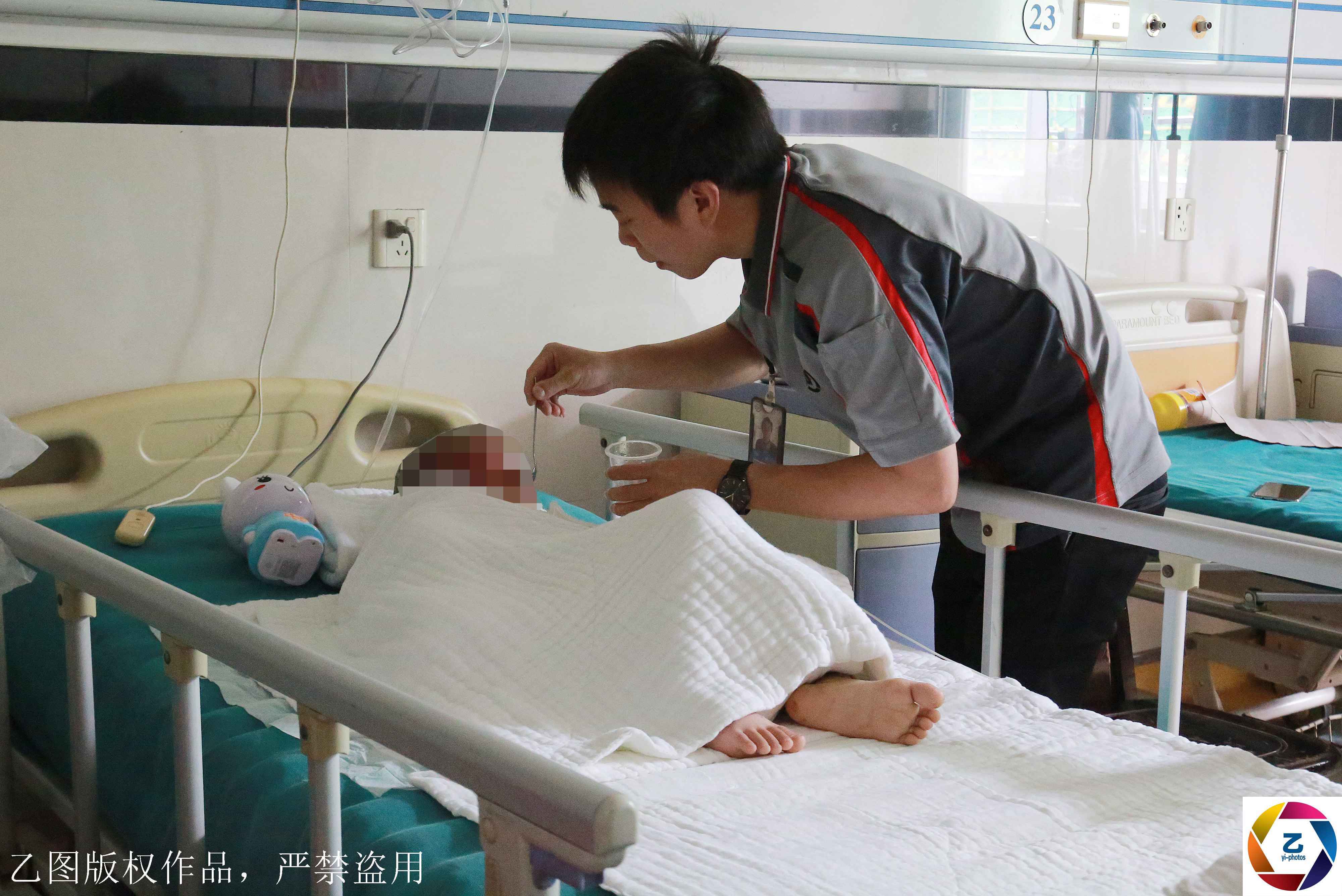 經(jīng)過搶救,小俊逸幸運(yùn)活了下來。據(jù)悉,小俊逸在爆炸中重度燒傷,深二度達(dá)9%,深三度達(dá)40%。醫(yī)生說孩子的雙手無法保住,但是馬上截肢孩子會有生命危險,需要先治療一段時間后再做手術(shù)。清醒之后的小俊逸不時痛苦地呻吟,他還不知道,爸爸和哥哥已經(jīng)永遠(yuǎn)離開了他。圖為護(hù)工在照顧躺在病床上的小俊逸。