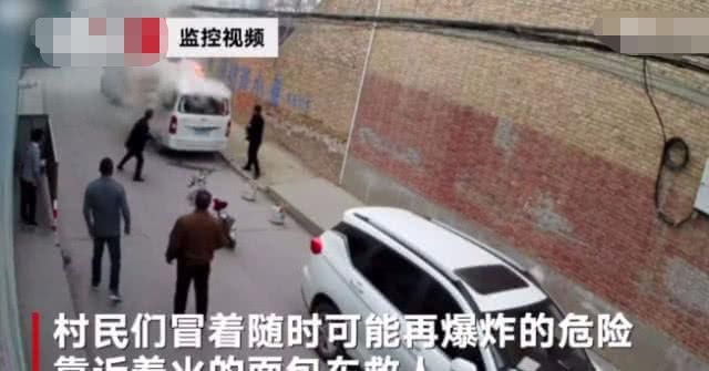 讓人感動的是,在第一次爆炸發(fā)生后,村民冒著隨時可能在爆炸的危險靠近著火的面包車救人,隨后面包車發(fā)生第二次爆炸。