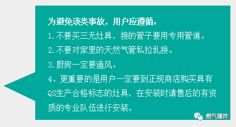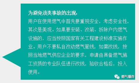 2012年7月27日重慶奉節(jié)縣一居民家發(fā)生天然氣意外泄漏事故,發(fā)生事故的居民家中所有家具和電器都被燒毀,窗戶的玻璃已被震爛。爆炸造成一家6人燒傷,最終一人搶救無(wú)效死亡。據(jù)網(wǎng)上報(bào)道爆炸是由于天然氣管道與輸氣軟管之間存在縫隙,導(dǎo)致天然氣泄漏引發(fā)的。在該戶家中,發(fā)現(xiàn)新買的燃?xì)庠罹?,是個(gè)三無(wú)產(chǎn)品。該戶的燃?xì)夤艿?,是由兩根軟管接起?lái)的,一根軟管不夠長(zhǎng),中間還用一根硬塑料管連了起來(lái),還使用了膠水來(lái)粘接,這是非常危險(xiǎn)的作法,連接的塑料管是硬的,天然氣完全可能因連接處泄漏出來(lái)。也許是用戶點(diǎn)了火,也許只是開了某一種電器的開關(guān),就引起了天然氣爆炸,隨后的火焰擴(kuò)散,屋內(nèi)東西全部燒毀。