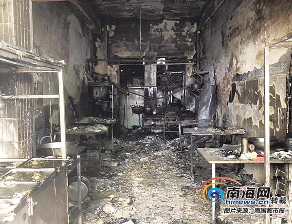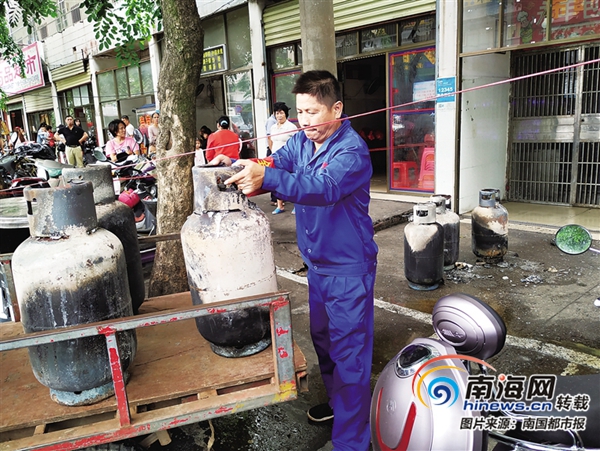 海口一家早餐店煤氣泄漏引發(fā)火災 店鋪燒毀6個煤氣瓶燒黑