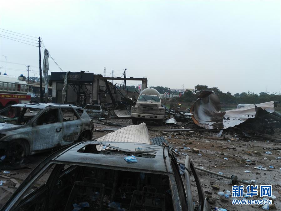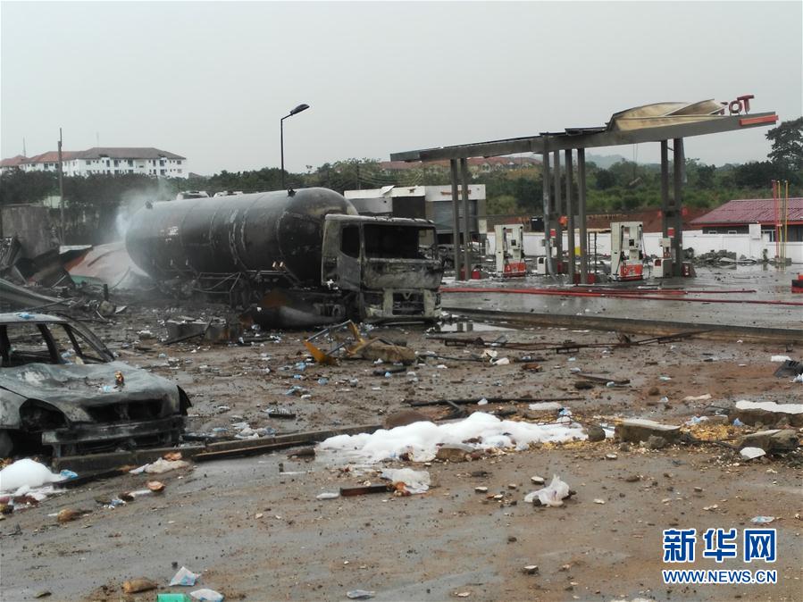 這是10月8日在加納首都阿克拉拍攝的燃氣站爆炸現場。加納國家消防局發(fā)言人安那格雷特8日說,加納首都阿克拉市區(qū)北部7日晚發(fā)生的燃氣站爆炸已造成至少6人死亡、35人受傷。新華社發(fā)(賈斯蒂斯·阿道伯伊攝)
